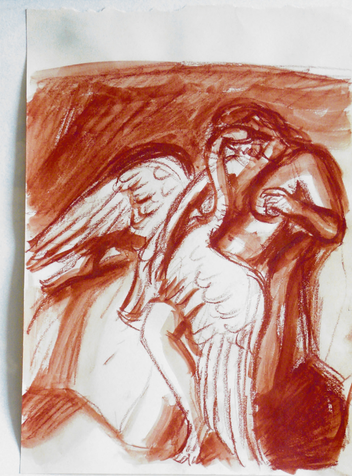 Tegning er grunnlaget for all min virksomhet – for all kunst for alle kunstnere overhodet. Å lage skulptur er å tegne i dybden. Linje, formen – det er veldig vanskelig. Så tegner du kinnet i leiren, men så kommer det plutselig noe bakfra. Mye av det jeg har laget har vært portrettoppdrag, og da er jeg mer bundet. Dess lenger personen har vært død, dess bedre. Da er det ingen som husker hvordan vedkommende så ut. Når det gjelder helfigurene kan det være noe med en silhuett i en kropp. Fra låret, inn i hoften og opp til skulderen – og det danner seg en figur. Andre ganger kan det ligge inspirasjon i et motiv jeg forestiller meg. Bare tenk på utfordringen det er å lage Leda og Svanen . Fantastiske og komplekse former skal settes sammen. Svanens fjær og buktende hals mot den nakne kvinnekroppen. Tenk på hvordan Rodin former en kvinnerygg – du ser en kvinne, lyset, skygge. En gjenkjennelse – en livets sannhet. Heller ikke hos Rodin var dette gudegitt. Det ligger hardt, målbevisst arbeid bak. Jeg kaller det kroppsmassasje.